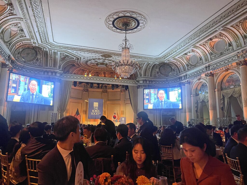 지난 10월 23일(화), 뉴욕 맨해튼 플라자 호텔에서 ‘코리아소사이어티 연례 만찬’이 개최되었습니다. 한미 관계 강화를 도모하고 양국 발전에 기여한 인사들을 기리기 위해 매년 열리는 이번 행사에는 양국의 정·재계, 외교, 학계, 문화·언론계 등 각계를 대표하는 주요 인사들이 참석하여 우호와 연대를 재확인하는 뜻깊은 시간이 마련되었습니다.